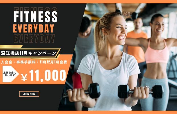 期間中にご入会していただくと、入会金・事務手数料11・12・1月会費まとめて¥11,000