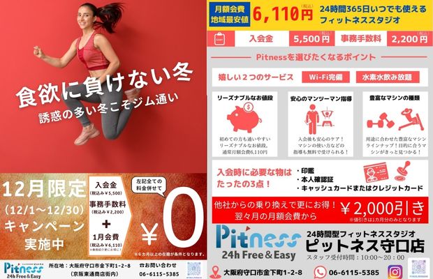 期間中にご入会していただくと、入会金・事務手数料1月会費が¥0