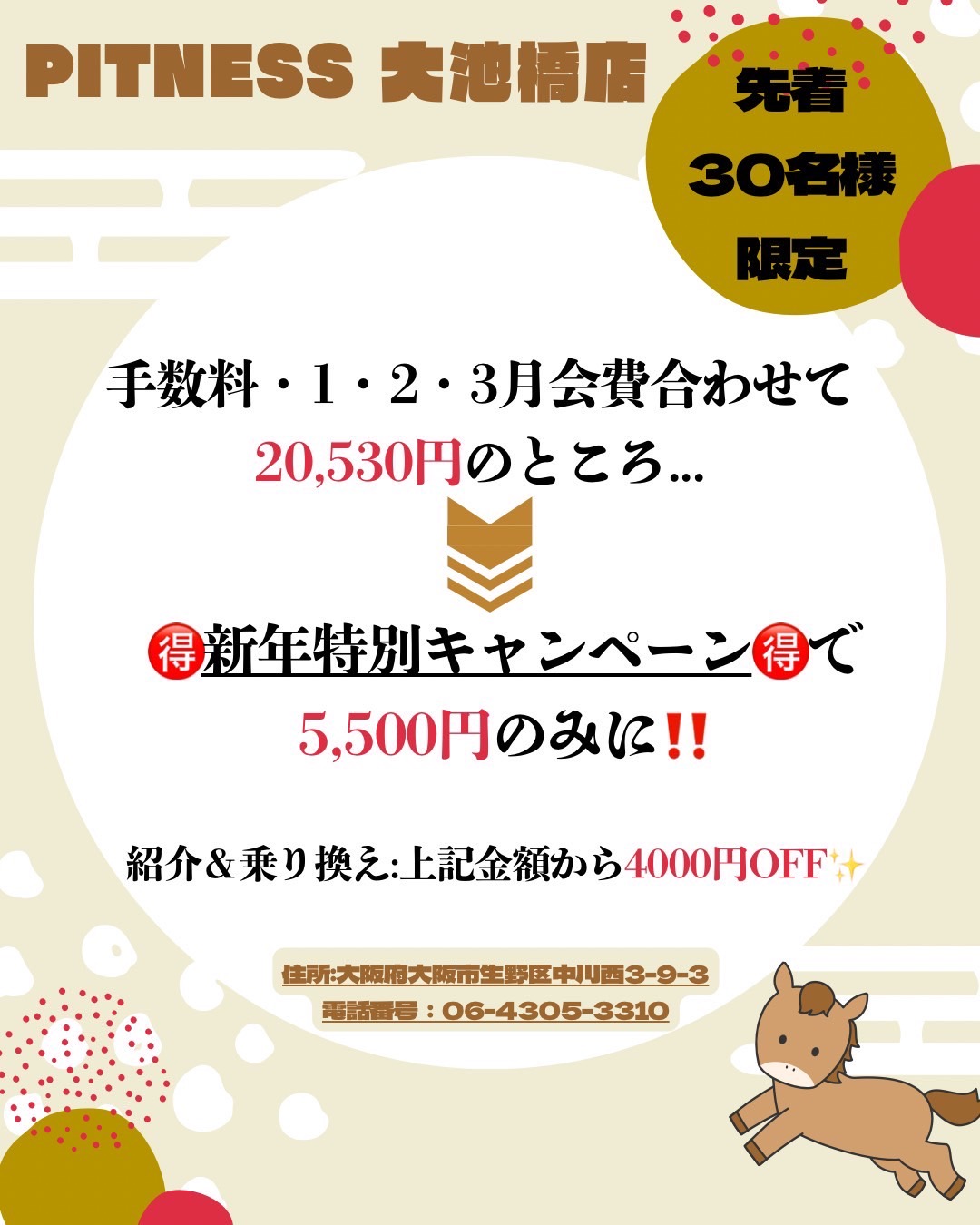 ※Pitness大池橋店に初めてご入会される方に限ります。