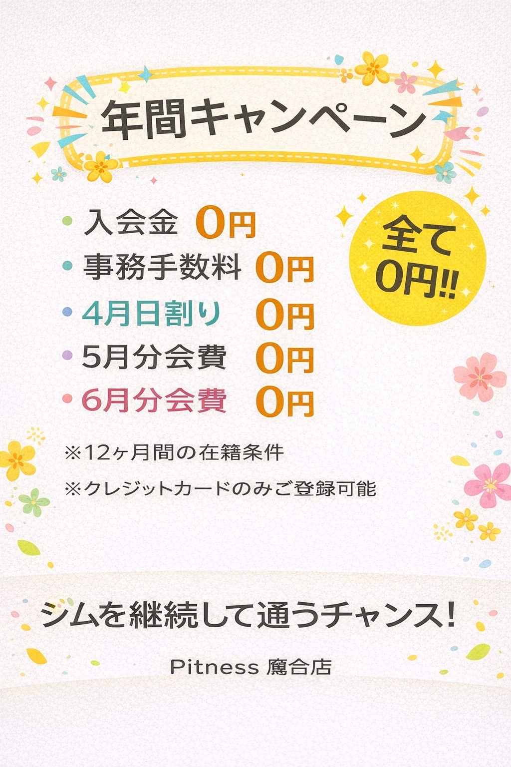 ※Pitness鷹合店に初めてご入会される方に限ります。